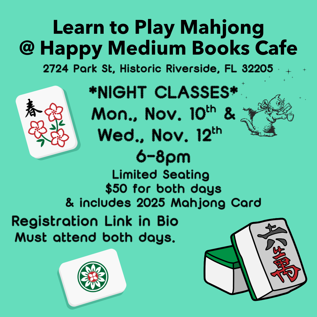 $50 covers the 2 – 2 hour classes on Monday, November 10th and Wednesday, November 12th 6pm – includes the 2025 National Mahjong Card.