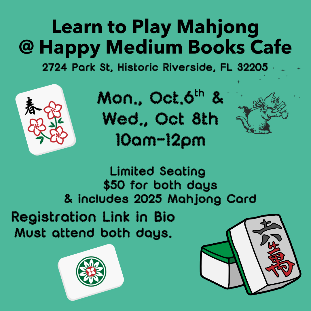 $50 covers the 2 – 2 hour classes on October 6th & 8th 10am-12pm and includes the 2025 National Mahjong Card.