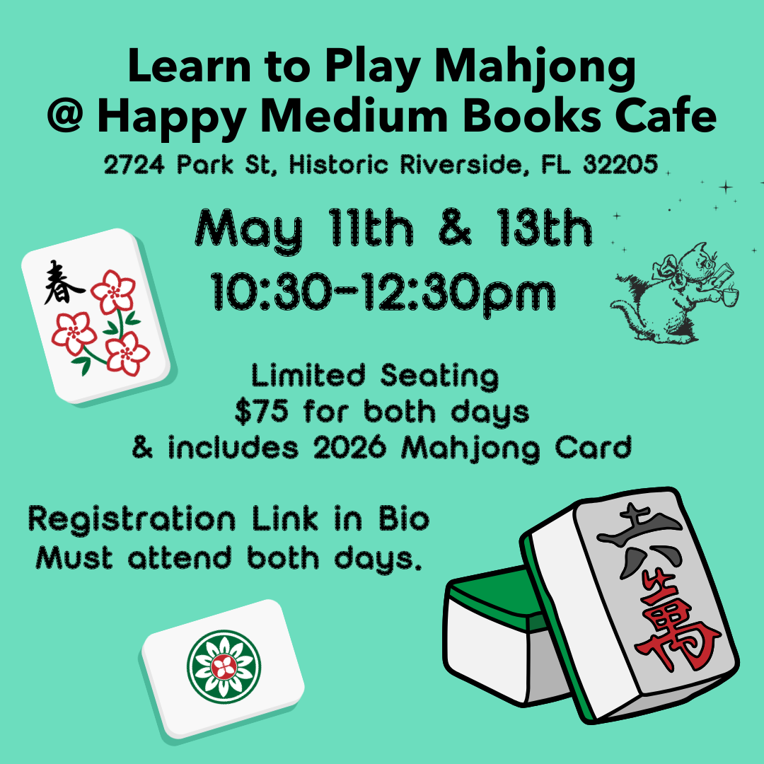 Happy Medium Books Cafe 2724 Park St, Jacksonville, FL, United StatesThis is a 2 day, 2 hour class. Participants will get the 2026 American Mahjong Card.