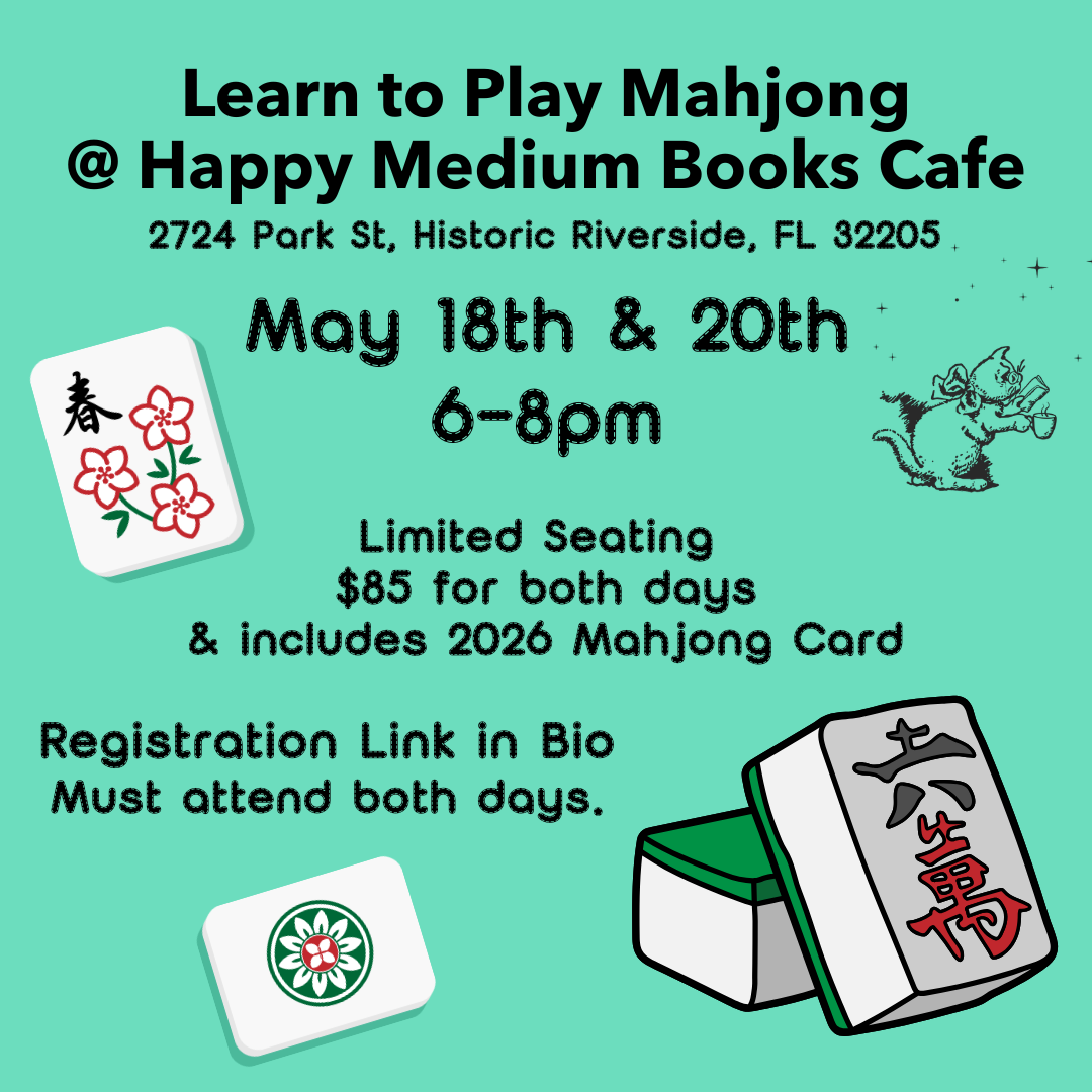 Happy Medium Books Cafe 2724 Park St, Jacksonville, FL, United StatesThis is a 2 day, 2 hour class. Participants will get the 2026 American Mahjong Card.