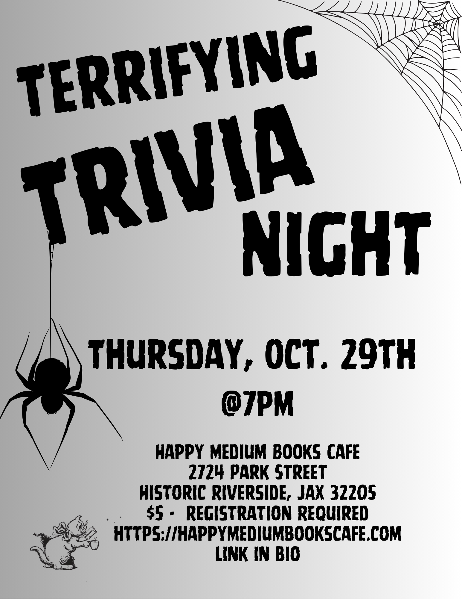Join us at the cafe for trivia and show off your knowledge of all things mystery, suspense, thrilling, and horror!