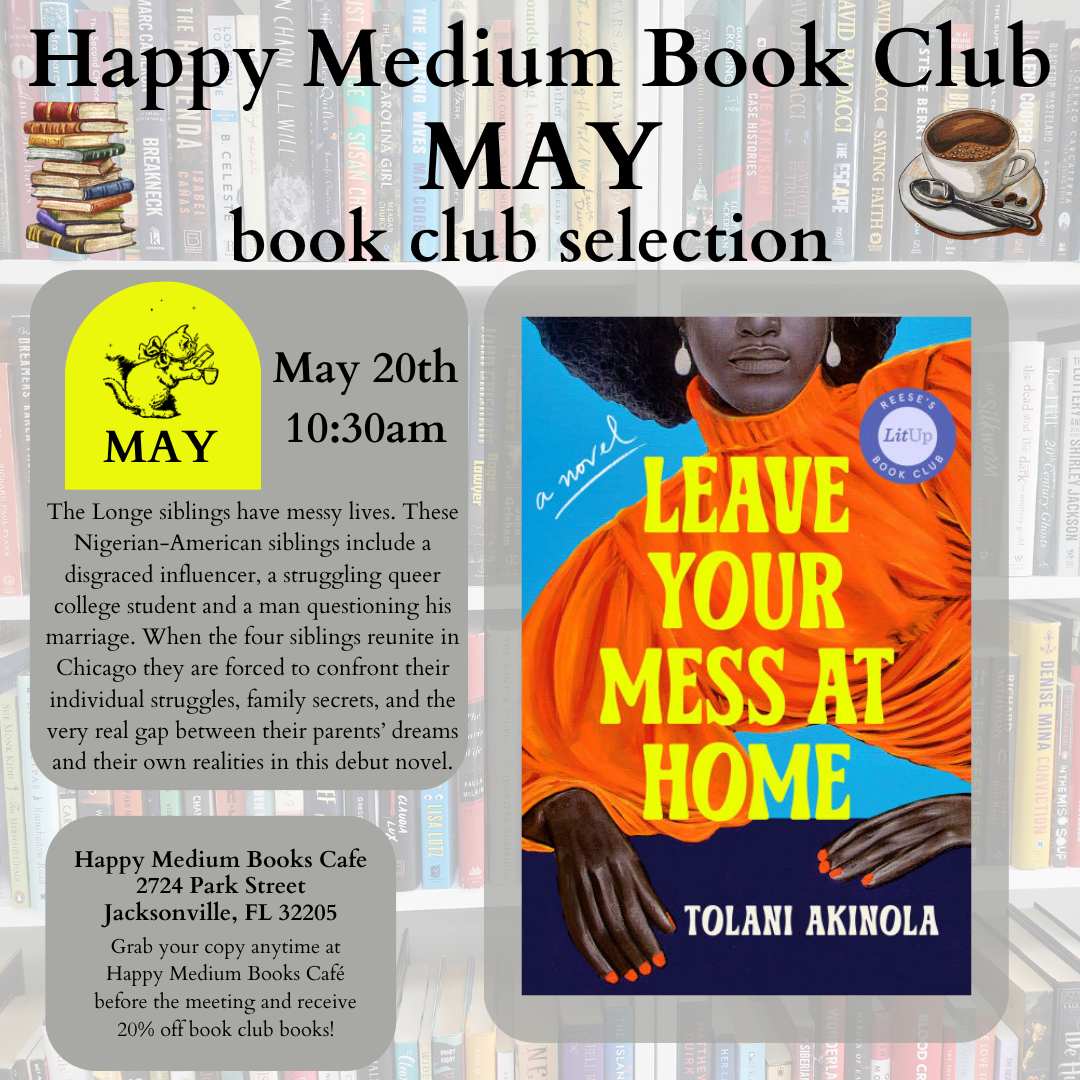 Happy Medium Books Cafe 2724 Park St, Jacksonville, FL, United StatesJoin us at the café as we discuss Leave Your Mess at Home by Tolani Akinola. As always, Happy Medium Book Club Books are 20% off at Happy Medium Books Café No sign ups needed, just show up. Bring a friend, or make new ones!