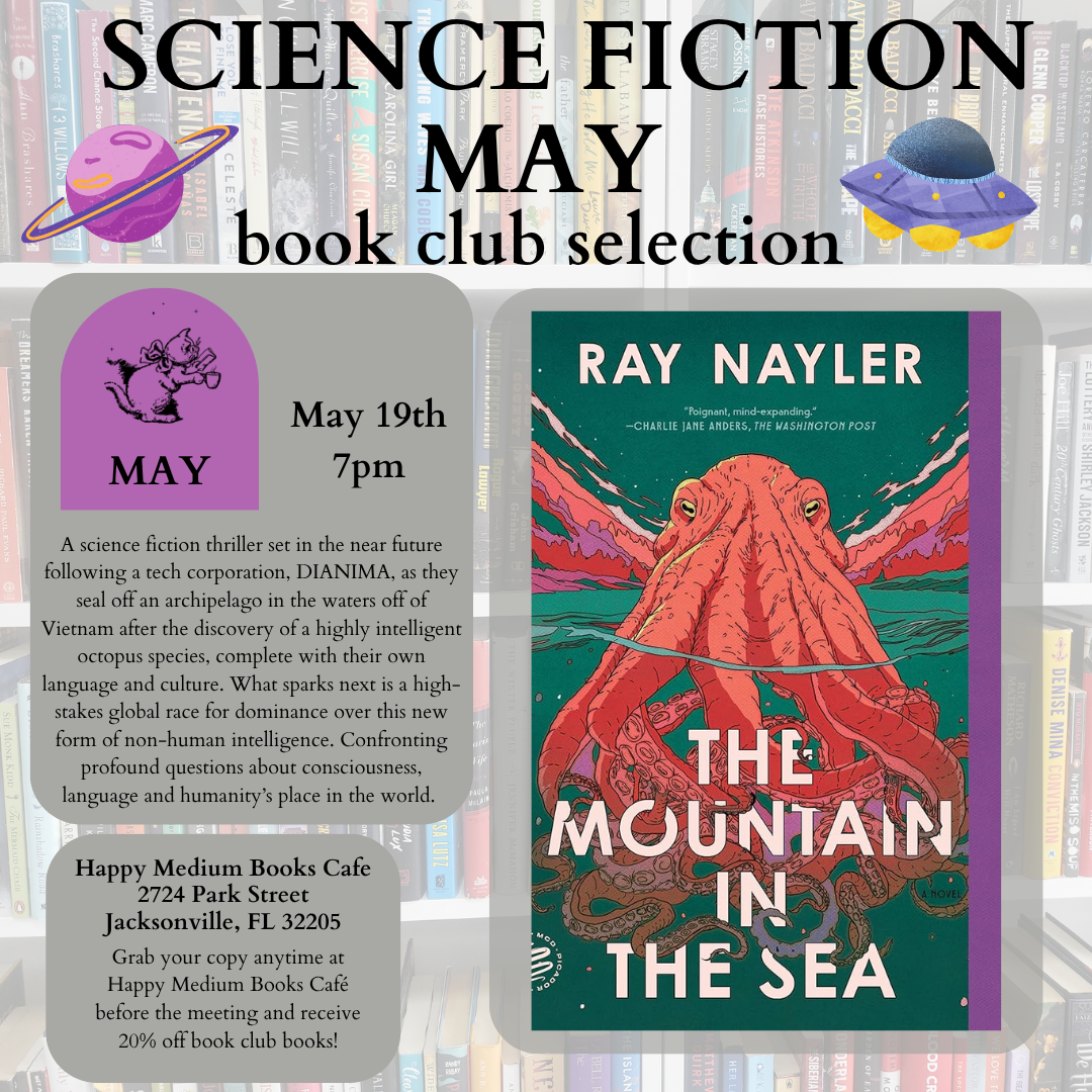 Happy Medium Books Cafe 2724 Park St, Jacksonville, FL, United StatesJoin us at the café as we discuss The Mountain in the Sea by Ray Nayler. As always, Happy Medium Book Club books are 20% off at Happy Medium. No sign up, just show up. Bring a friend or make a new one!